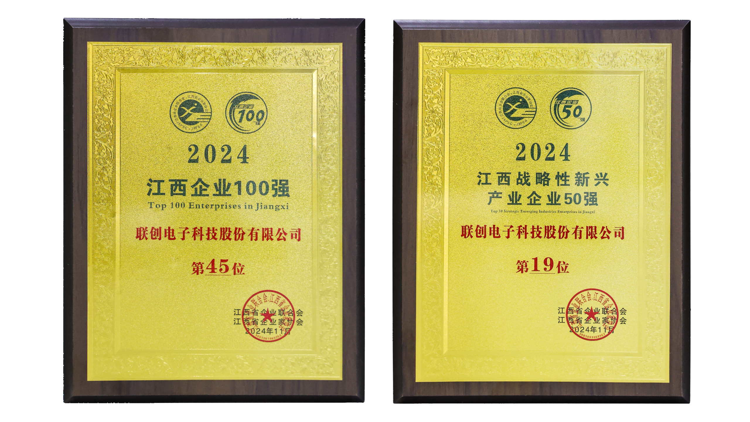 【概要描述】11月20日,江西省企业联合会、江西省企业家协会发布“2024江西企业100强”“2024江西战略性新兴产业企业50强”榜单。九游网页版·官方端入口凭借稳健的经营业绩和较强的综合实力,荣登2024江西企业100强第45位、战略性新兴产业企业50强第19位。这一成绩的取得,充分反映了联创电子在电子信息、战略性新兴产业领域的深厚积淀和强劲发展势头。