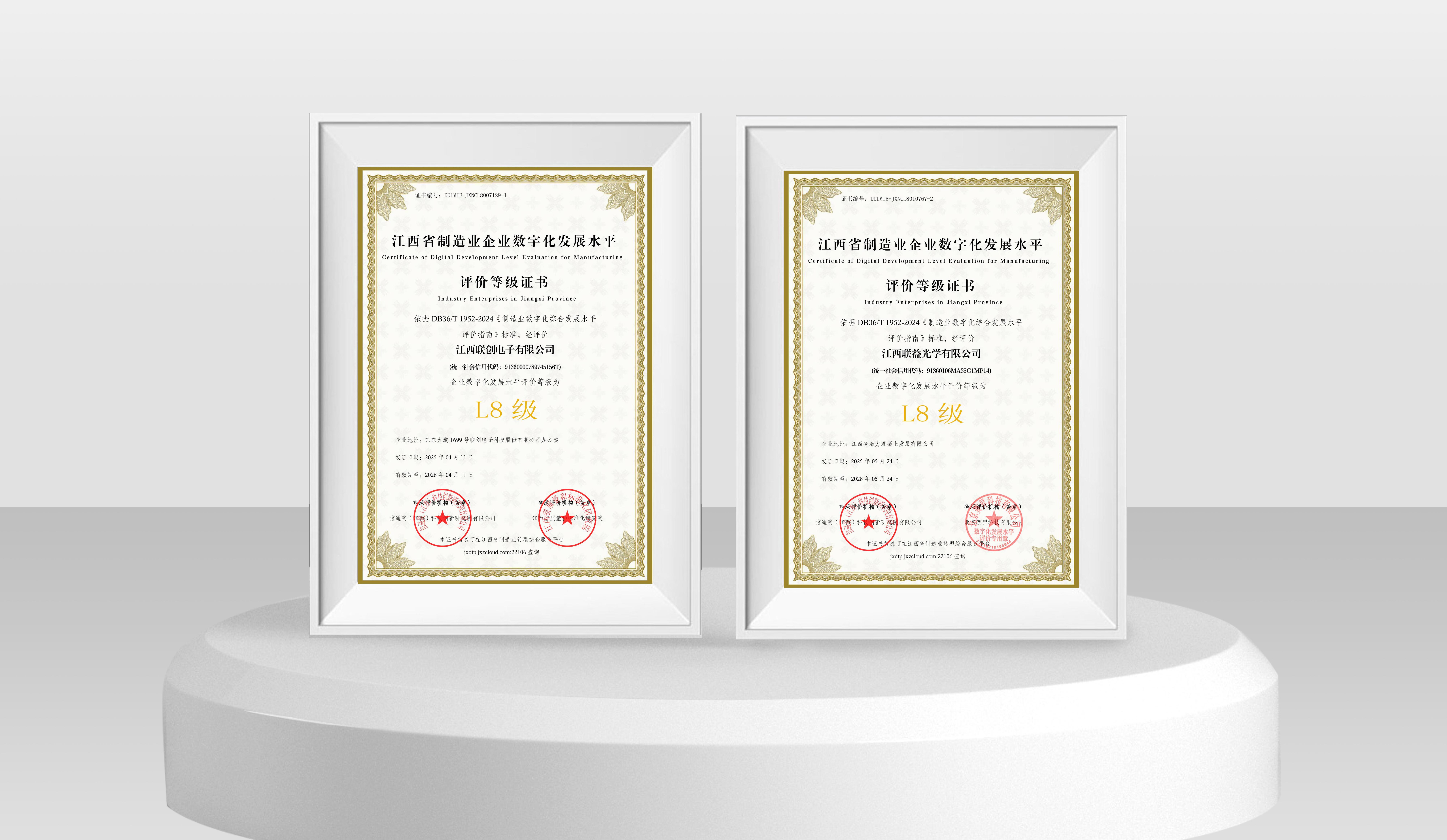 近日,九游网页版·官方端入口旗下江西联创电子有限公司(以下简称江西联创)与江西联益光学有限公司(以下简称江西联益)凭借深度集成与创新应用能力,在江西省制造业企业数字化发展水平等级评价中双双达到L8级水平,标志着两家企业在数字化转型领域已跻身全省“集成提升阶段”最高水平,为全省制造业智能化升级树立新标杆。